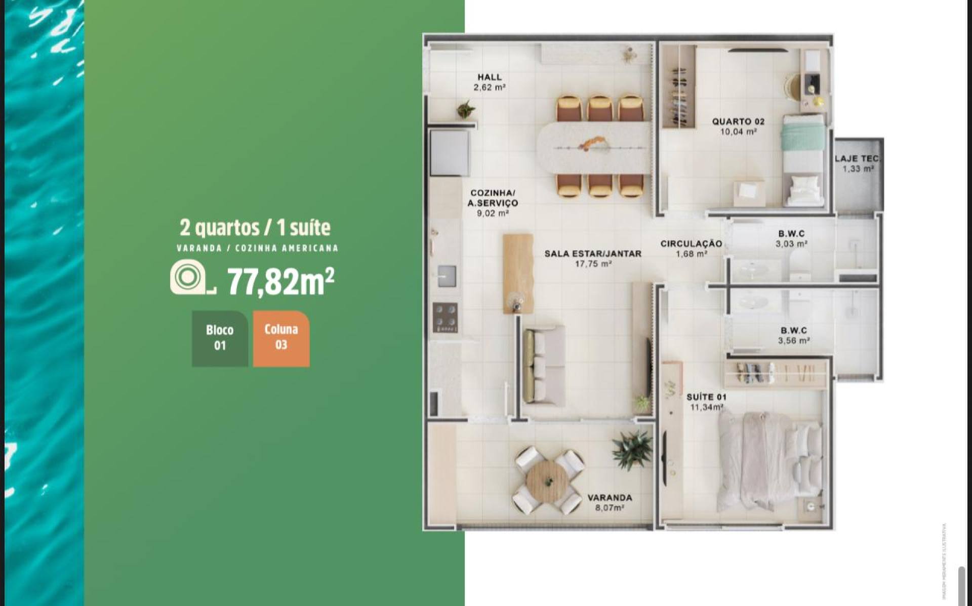 Área Total: 77m²